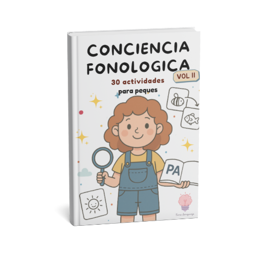 El Cuadernillo de Conciencia Fonológica – Vol. II trae una progresión clara de actividades para que tus peques avancen paso a paso: segmentación → rimas → sílabas iniciales/finales → conciencia fonémica / silábica. Todo con apoyos visuales, consignas breves y formato listo para imprimir.